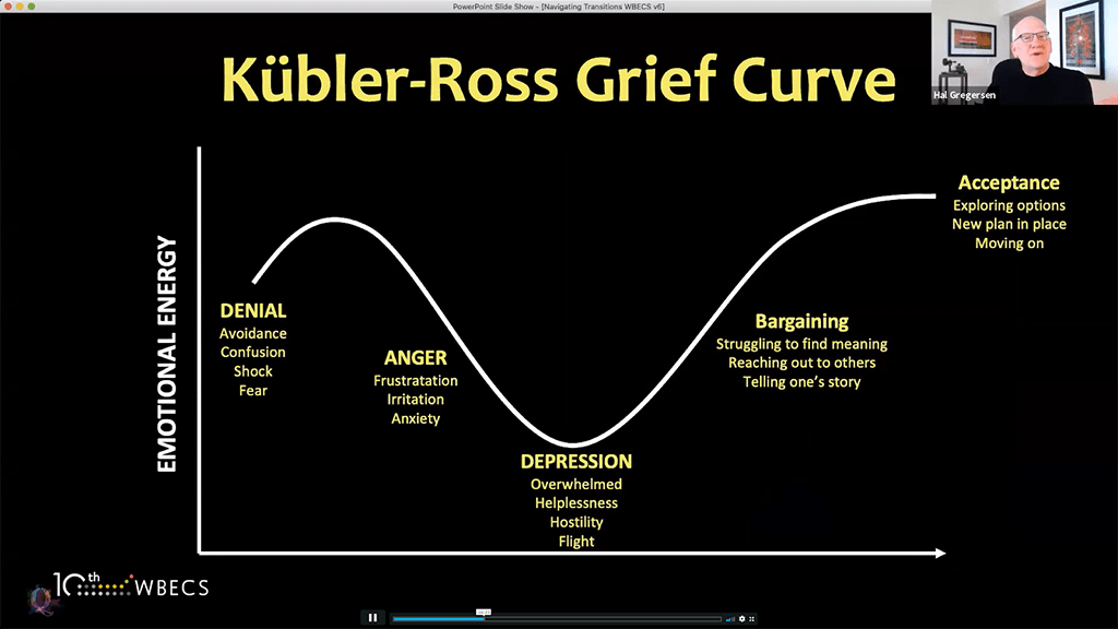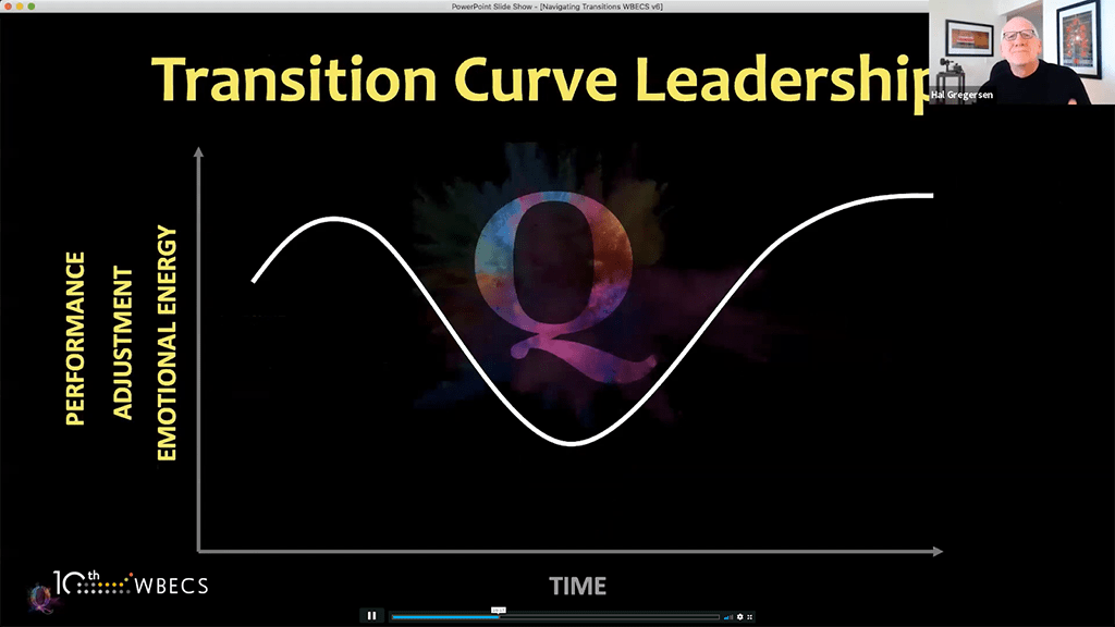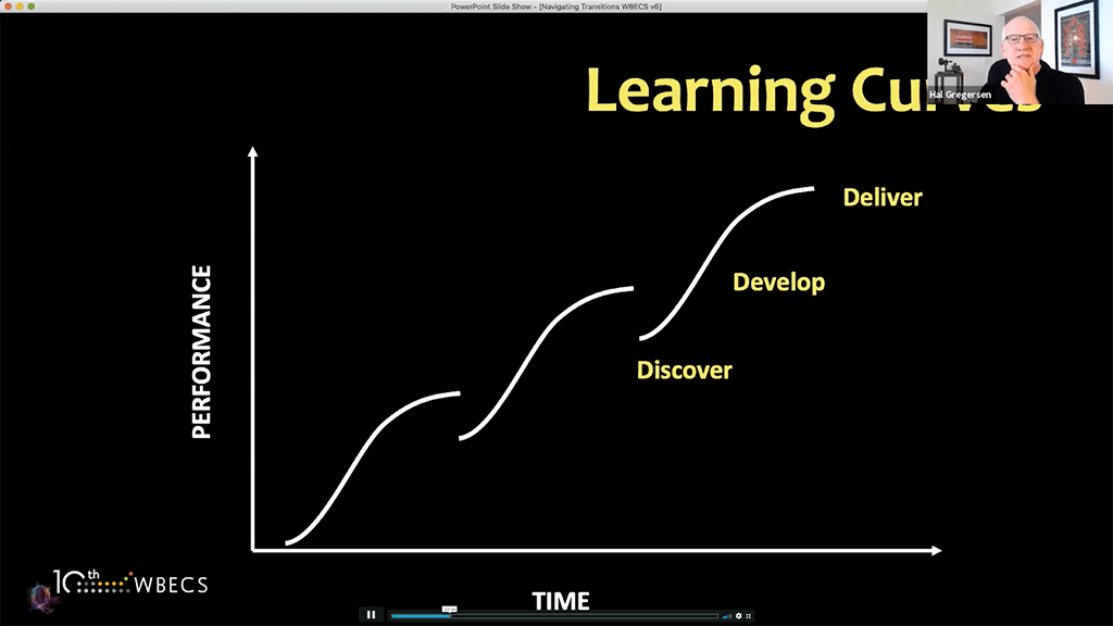 Hal B. Gregersen talked through the transition curve at the WEBCS conference. This curve is a way to understand what we are facing. It is that we are in three curves of being all at the same time. (see images)